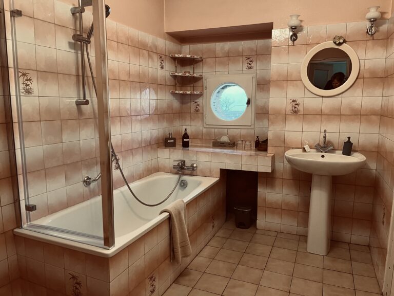 La salle de bain est accessible depuis chaque chambre, avec la possibilité de fermer la porte pour plus d’intimité. Elle comprend :