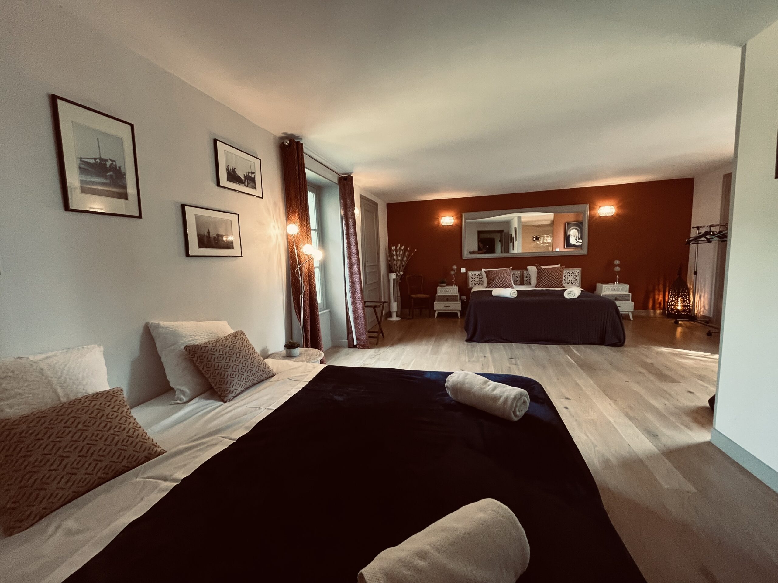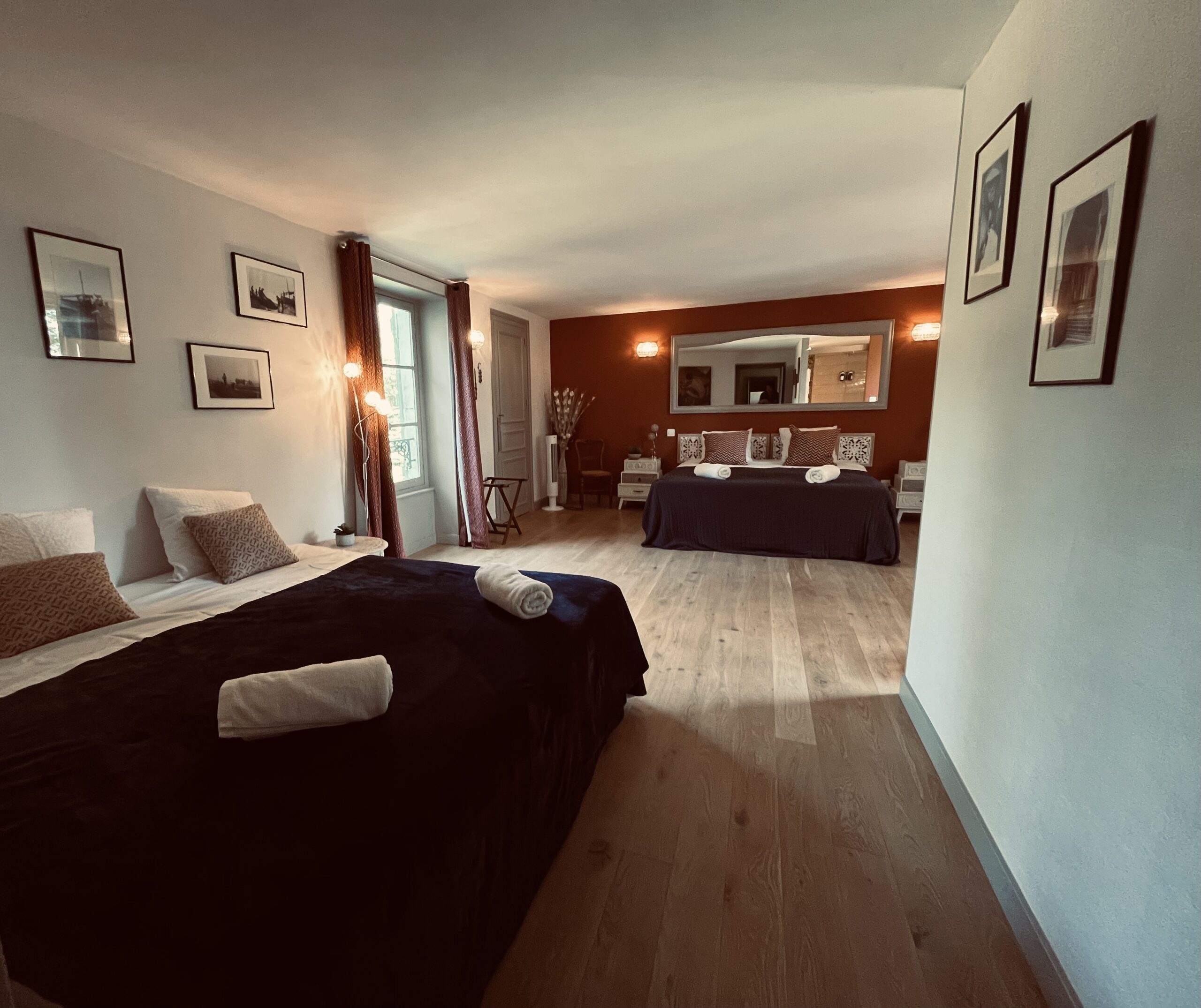 Installée au 2ᵉ étage du château, cette chambre cocooning et apaisante est idéale pour se ressourcer en toute tranquillité.